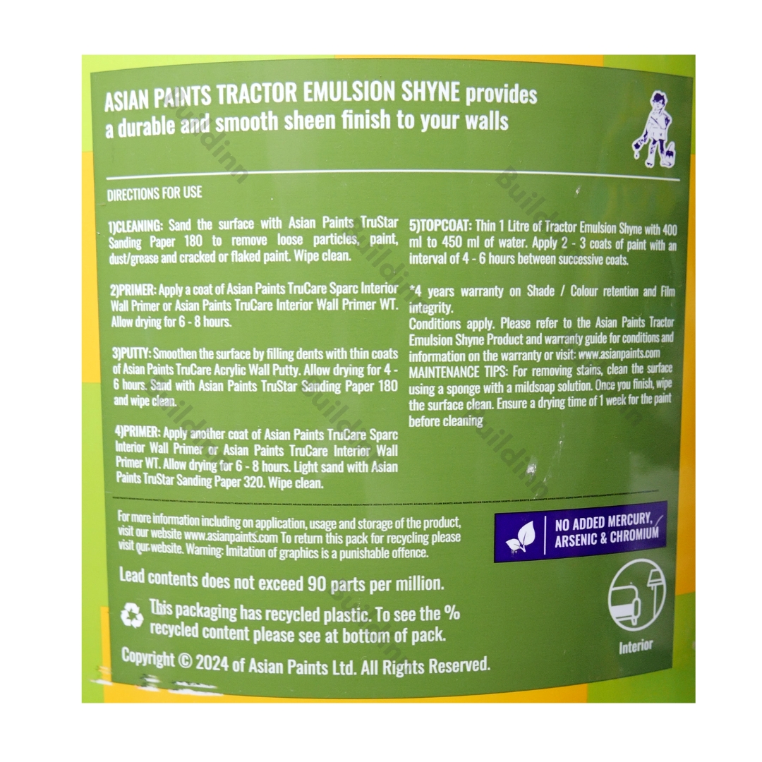 Asian Paints Tractor Emulsion Shyne is the perfect choice for you if you are looking to create walls that have a touch of luxurious sheen finish, resist any fading that UV rays can cause, and have superior washability than regular distemper on a budget with this interior emulsion.
